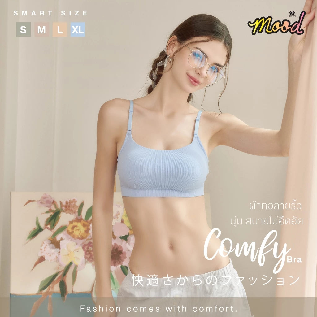 Wacoal Mood ชุดชั้นเนียน บราไร้โครง Smart Size เสริมฟองน้ำ รุ่น MM1F06 สีดำ (BL)