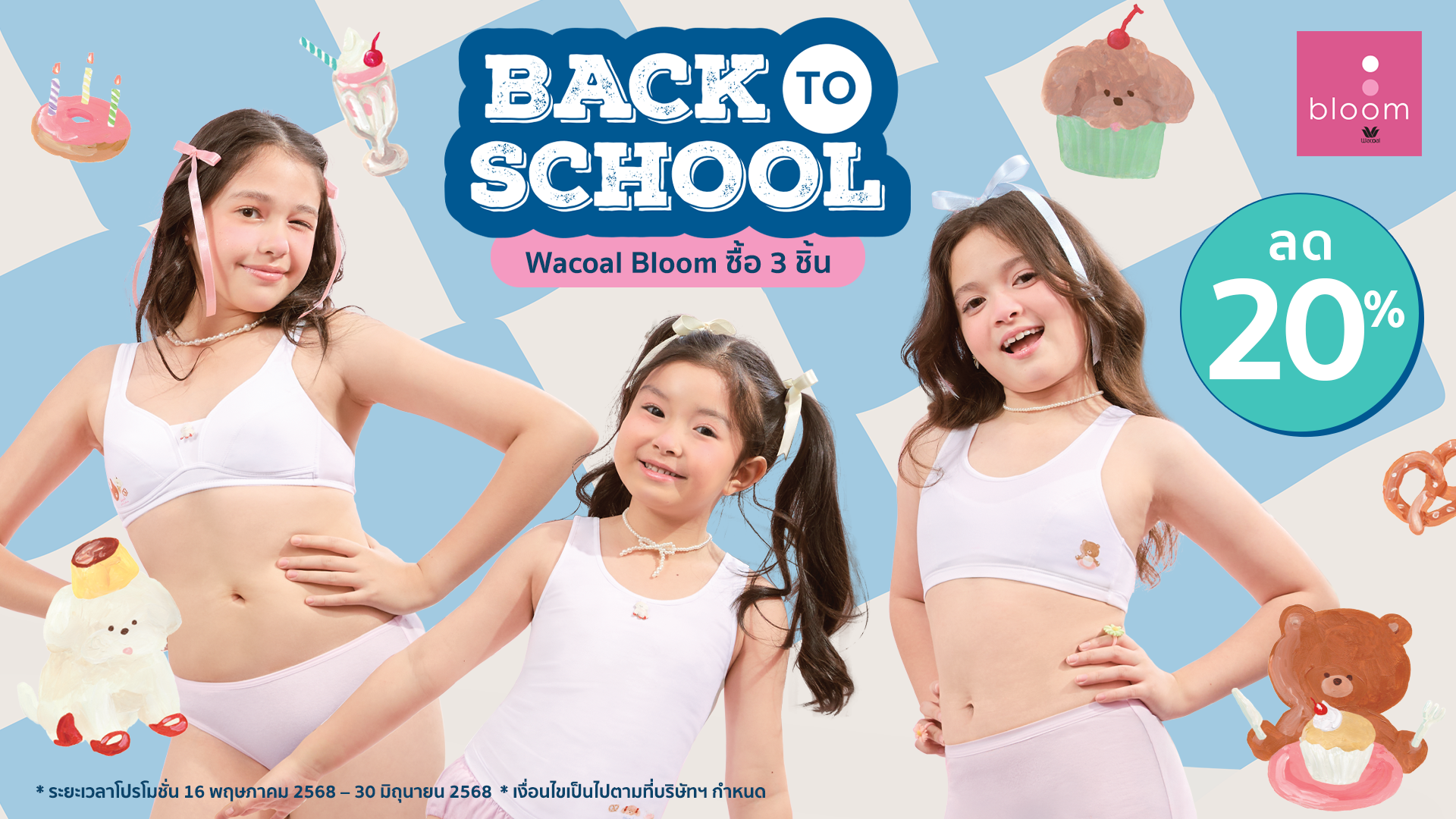 Wacoal Bloom Step 3 ชุดชั้นในสำหรับเด็ก เสื้อในเด็กลาย Plaifah.postcard รุ่น WB1Y12 สีขาว (WH)